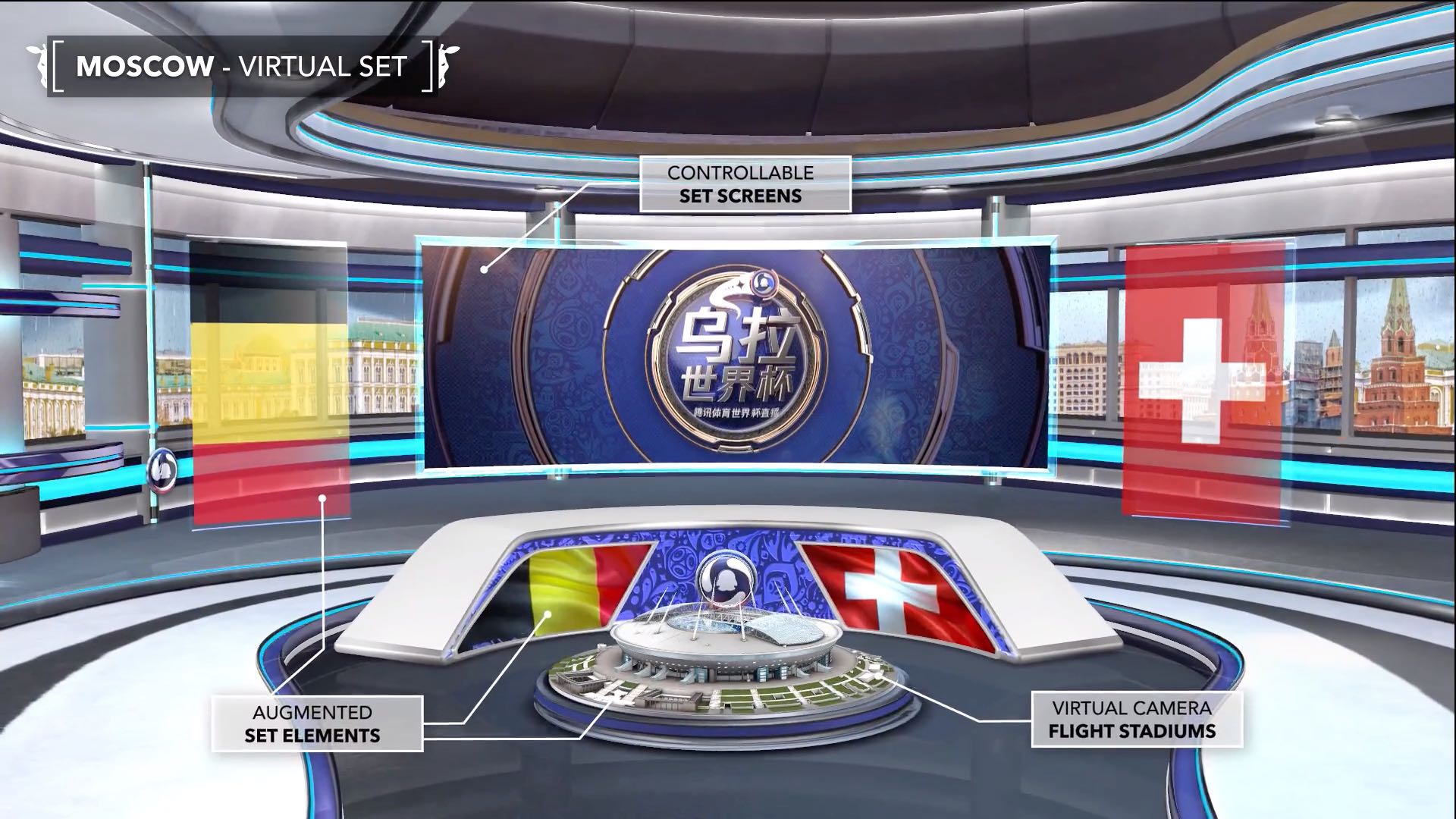 2018年动视团队为腾讯体育提供了俄罗斯世界杯莫斯科前方演播室的全案服务。